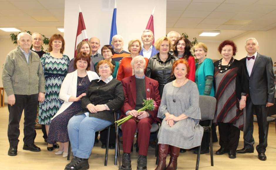 Dzejnieku jubilejā sirsnīgi sveica Forštates kultūrtelpas darbinieki, Daugavpils rakstnieku organizācijas biedri un daudzi citi viesi.